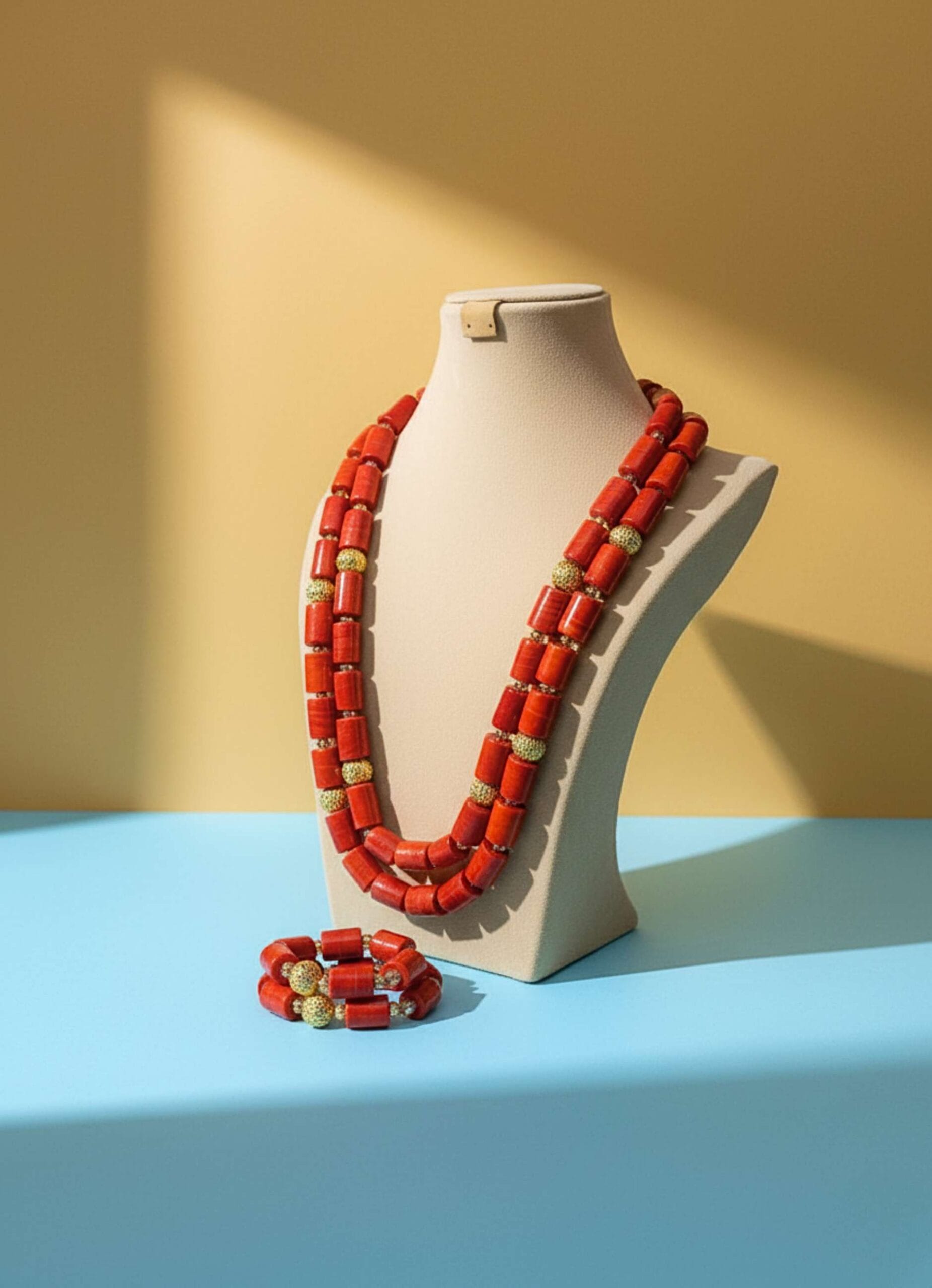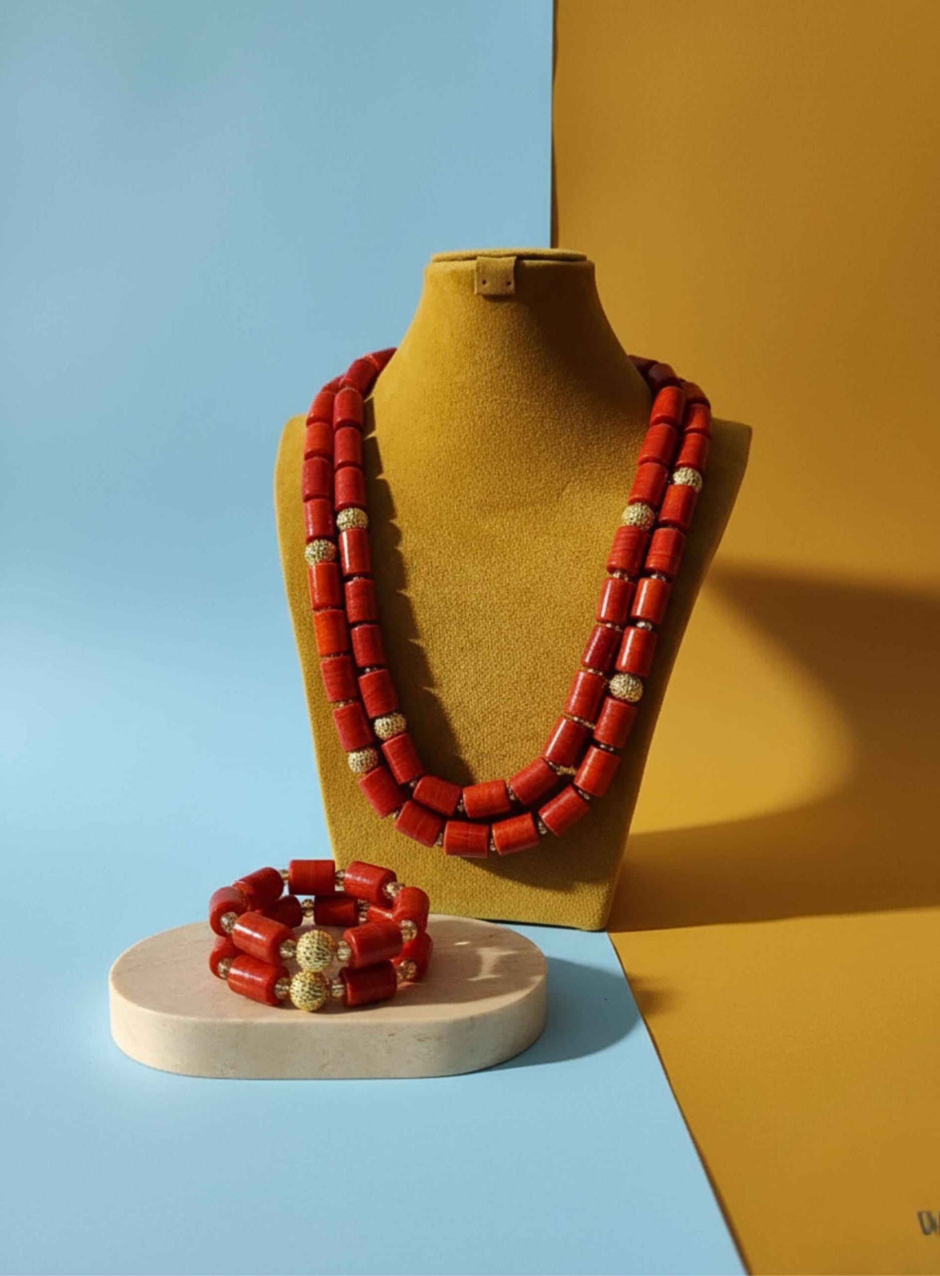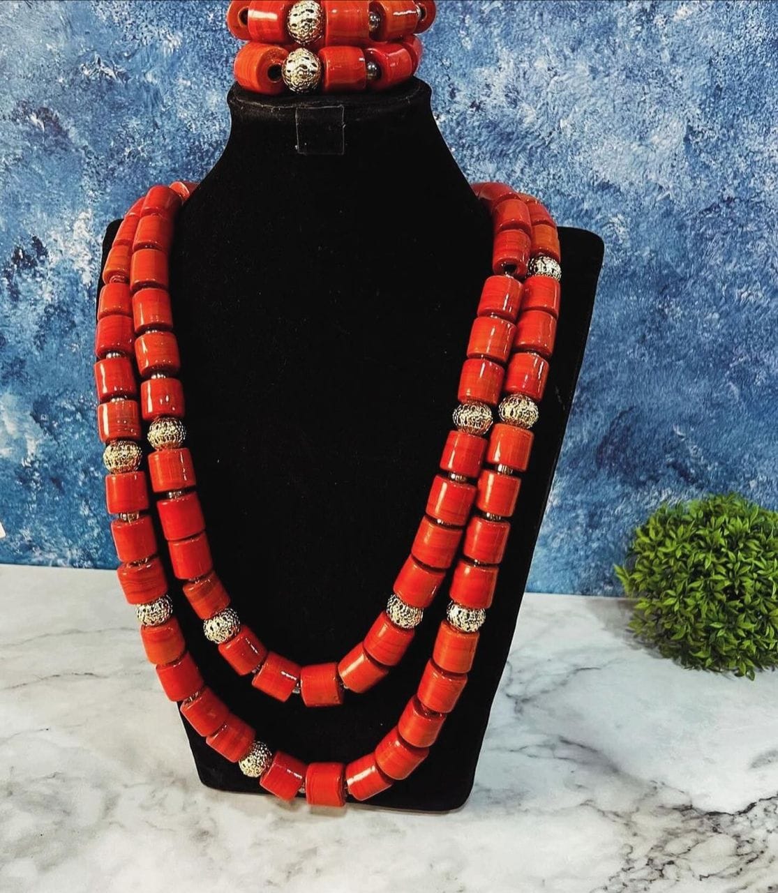 Coral beads have long symbolized royalty, power, wealth, and respect in African culture — especially within Igbo, Benin, and Yoruba traditional settings. This beautifully handcrafted bead set reflects that heritage while adding a bold modern presence.